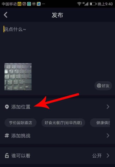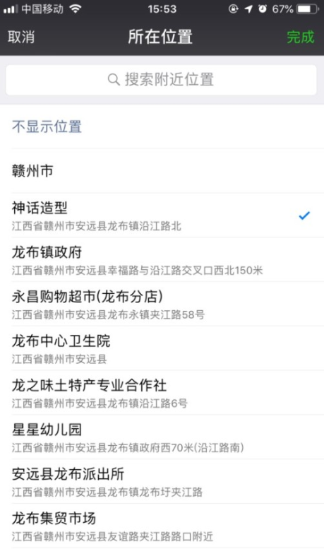 点击完成后,直接发布作品后,你的位置就会在你的作品上显示了。